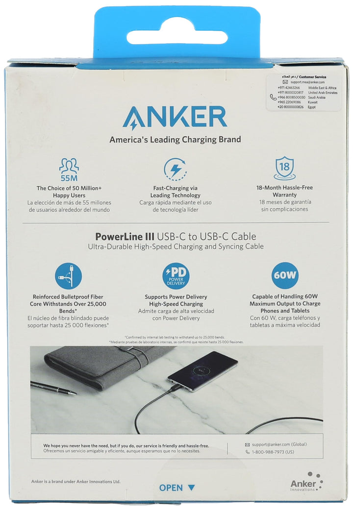 انكر كيبل A8852H21 باورلاين III USB-C إلى USB-C 2.0 مصنوع من مواد عالية الجودة لضمان نقل الطاقة الأمثل. مصممة لتحمل الاستخدام المتكرر وتوفير تجربة شحن موثوقة. تضمن المتانة وطول العمر، مما يجعلها مقاومة للانحناء والاهتراء والتلف الناتج عن الاستعمال اليومي. تتميز بتصميم خالٍ من التشابك يجعل من السهل التعامل مع الكيبلات وتخزينها دون قلق. تضمن توافقًا سلسًا وطريقة مريحة للحفاظ على تشغيل أجهزتك. يأتي بطول 0.91 متر باللون الأبيض.